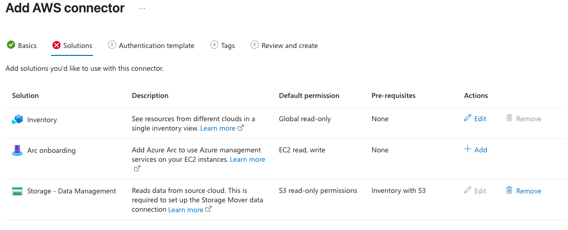 A próxima aba iremos escolher a solução que iremos usar, nesse exemplo estamos configurando 2 (duas) opções: Inventory e Storage - Data Management