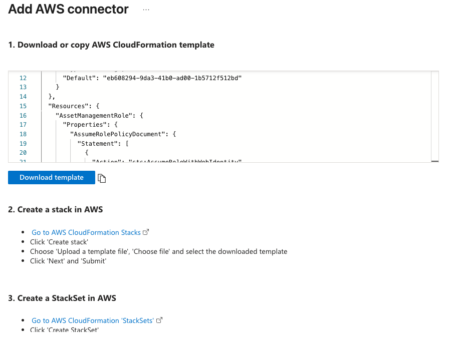 Para os passos 2. Create a stack in AWS e 3. Create a StckSet in AWS devemos seguir os passos no portal AWS seguindo o que as tasks estão no pedindo para criar.