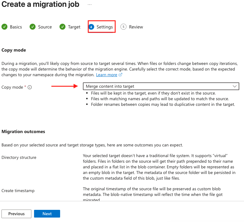 Merge content into target: Os arquivos serão mantidos no destino, mesmo que não existam na origem. Arquivos com nomes e caminhos correspondentes serão atualizados para corresponder à origem. Renomeações de pastas entre cópias podem levar a conteúdo duplicado no destino.