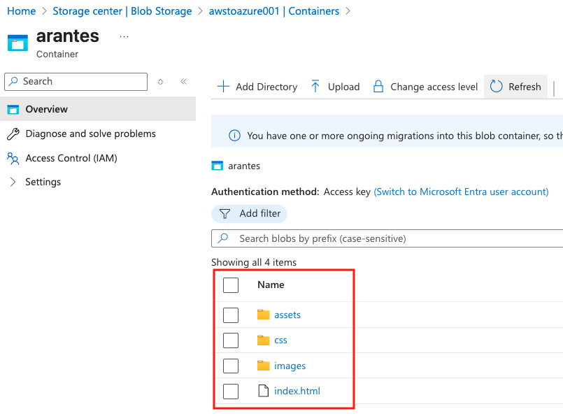 Como um double check podemos ir até a Azure Storage Account escolhida como destino e ver se realmente os arquivos foram copiados para lá: