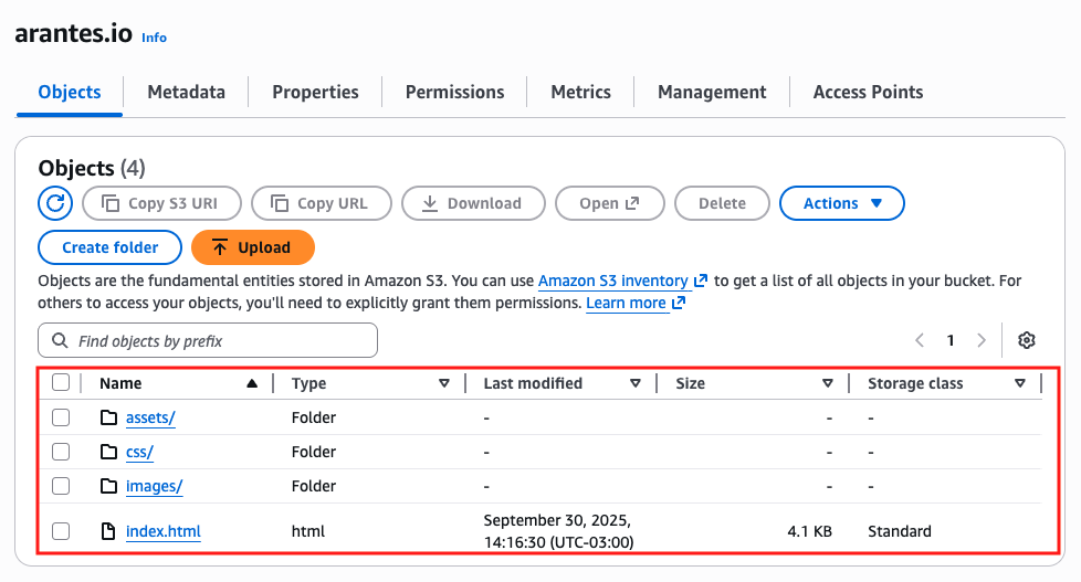 E se compararmos com o conteúdo do S3 Bucket iremos ver que temos os mesmos arquivos na origem e no destino: