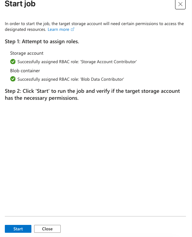 Antes de iniciar a tarefa é realizado uma verificação se as permissões estão todas OK e somente se estiverem como Successfully podemos clicar no botão Start